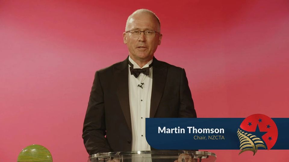 NZCTA President Martin Thomson, Chinese Ambassador to New Zealand Wang Xiaolong, New Zealand Minister of Trade and Export Growth and Agriculture Damien O'Connor, and other guests attended the online awards ceremony.