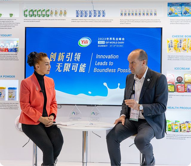 伊利代表當選IDF董事接受新華社媒體參訪、與國際乳聯主席座談。伊利兩項獲乳品創新獎產品——“金典無印刷無油墨環保包裝”獲得“可持續包裝創新獎”、“伊利常溫奶酪棒”獲得“以食品安全和消費者營養為核心的新品創新研發獎”在此設專區展示。