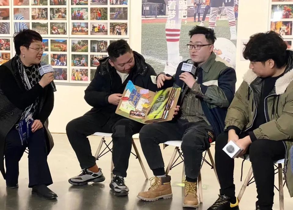在展覽現(xiàn)場向嘉賓們分享公益故事
