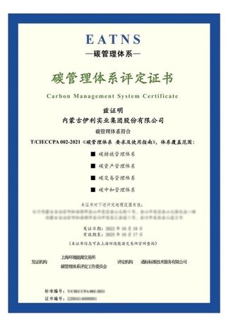 活動現(xiàn)場,伊利集團獲得了由SGS通標標準技術(shù)服務(wù)有限公司評定、上海環(huán)境能源交易所授予的"碳管理體系評定證書",成為行業(yè)內(nèi)第一個符合《碳管理體系要求及使用指南》的企業(yè)。